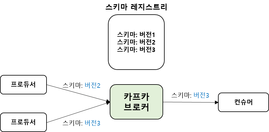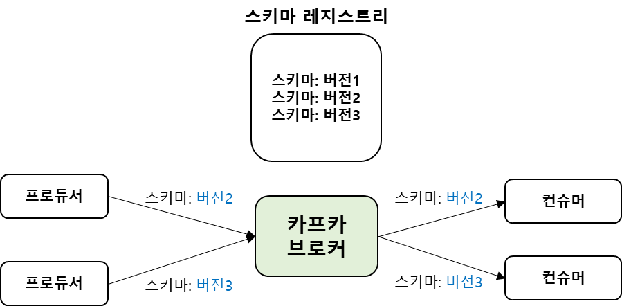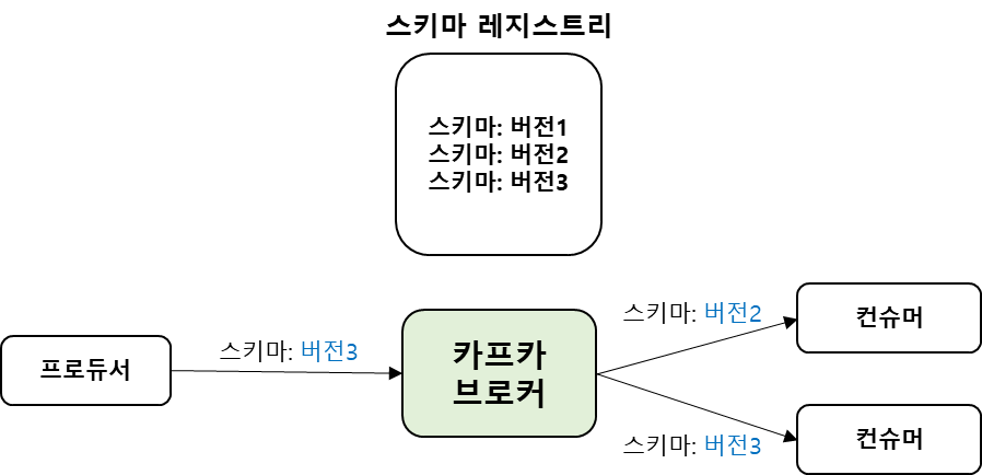 프로듀서가 스키마 정보를 스키마 레지스트리에 등록함으로써 프로듀서가 전송하는 메시지의 크기와 컨슈머가 읽는 메시지의 크기도 줄일 수 있고 사전에 정의되지 않은 형식의 메시지는 전송할 수 없기 때문에 컨슈머에서 해당 처리에 대한 고민을 줄일 수 있다.