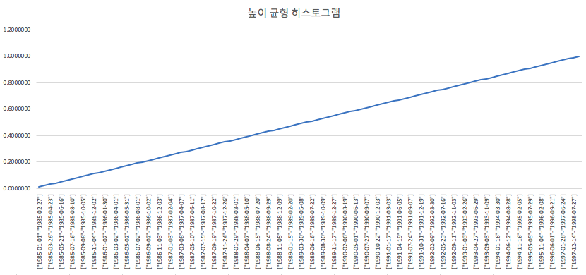 컬럼값의 각 범위에 대해 레코드 건수 비율이 누적으로 표시되기 때문에 그래프의 기울기가 일정하면 각 범위가 비슷한 값(레코드 건수)을 가진다는 것이다.