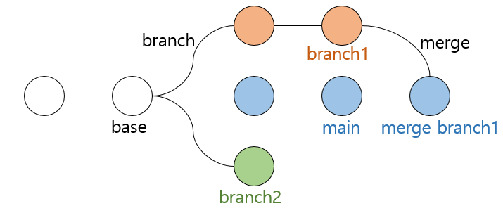 - base 의 내용을 하나의 브랜치만 변경한 경우 해당 내용으로 합친다.
