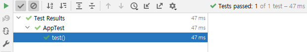 test() 메소드를 실행하면 JUnit 이 테스트를 진행한다.