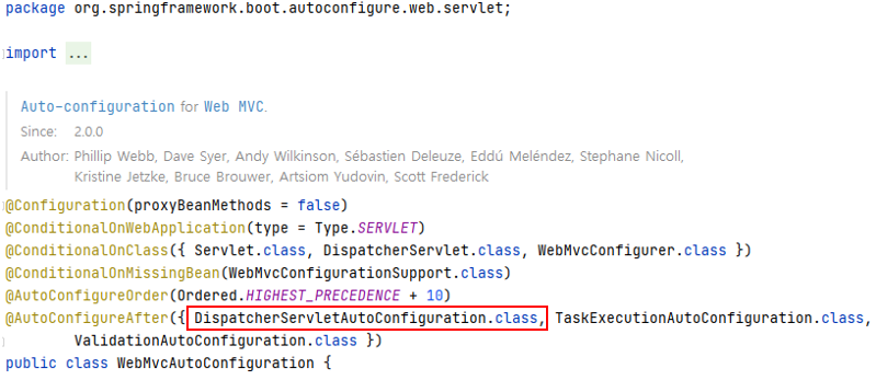 목록중에 org.springframework.boot.autoconfigure.web.servlet.WebMvcAutoConfiguration 클래스를 통해