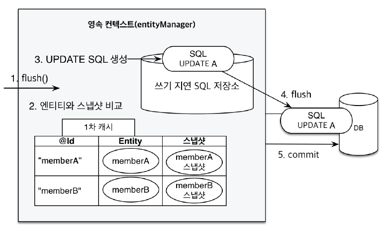 JPQL이 실행될 때 영속성 컨텍스트에 저장된 SQL은 함께 flush 되어 나가기 때문에 문제가 없지만