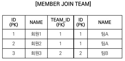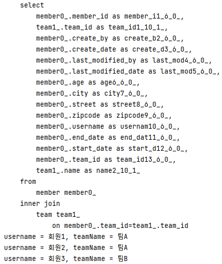JPQL은 결과를 반환할 때 연관관계를 고려하지 않고 SELECT 절에 지정한 엔티티만 조회할 뿐이다.