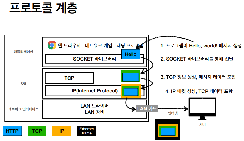 1 ~ 4 과정을 거쳐 TCP/IP 패킷이 만들어진다.