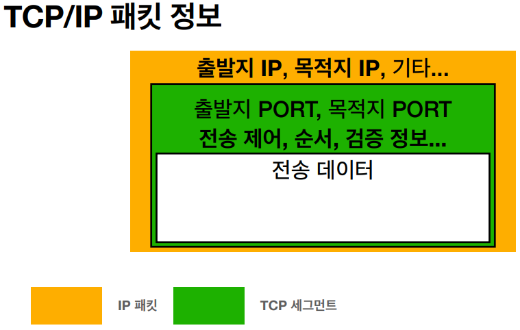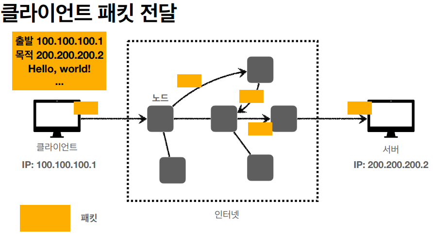 - 출발지 IP 주소, 도착지 IP 주소, 전송 데이터 등을 IP 패킷에 포함해 전송