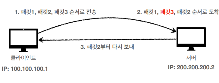 잘못된 순서의 패킷부터 다시 보내도록 클라이언트로 요청한다.