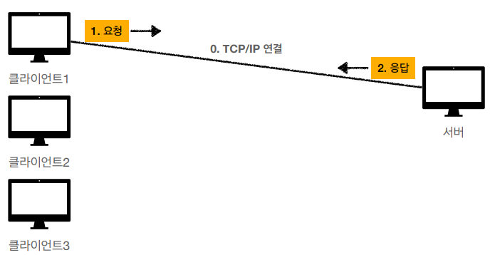 - 클라이언트는 서버에 요청을 보내고, 응답을 대기