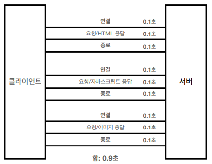 - TCP/IP 연결을 새로 맺어야 함 - 3 way handshake 시간 추가