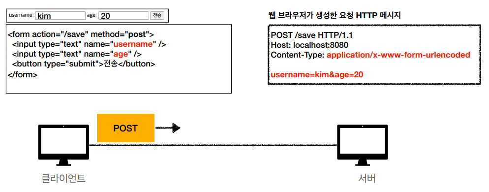 - 메시지 바디를 통해 서버로 요청 데이터 전달