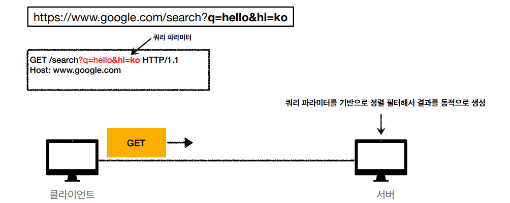 - 서버에 전달하고 싶은 데이터는 query(쿼리 파라미터, 쿼리 스트링)를 통해서 전달
