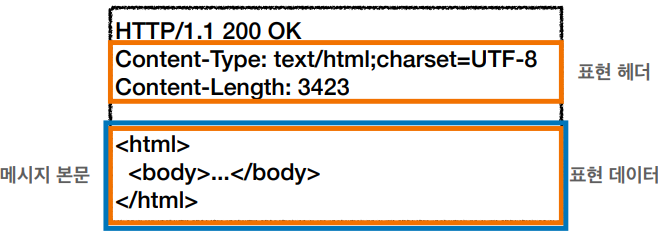 - 메시지 본문(message body)을 통해 표현 데이터 전달