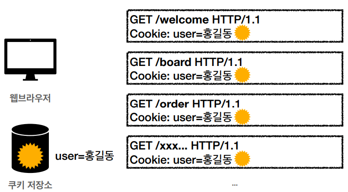 [ 모든 요청에 쿠키 정보 자동 포함 ]
