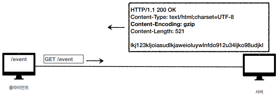 - 데이터를 전달하는 곳에서 압축 후 인코딩 헤더 추가