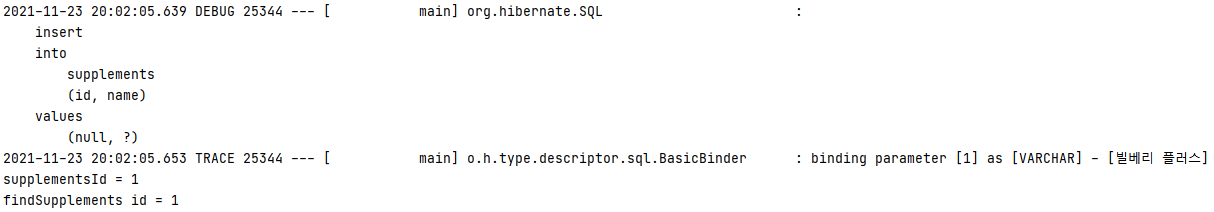 System.out.println("findSupplements id = " + findSupplements.getId());
