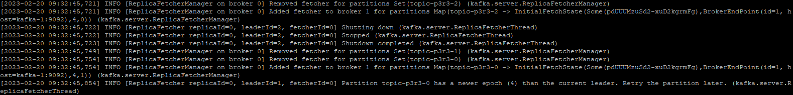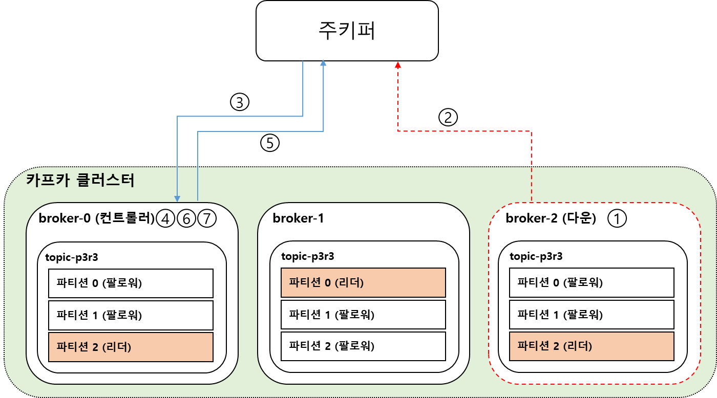 - 해당 파티션을 복제하는 모든 브로커들에게 새로운 Leader/Follower 정보를 전달하고 새로운 Leader로 부터 복제 수행할 것을 요청