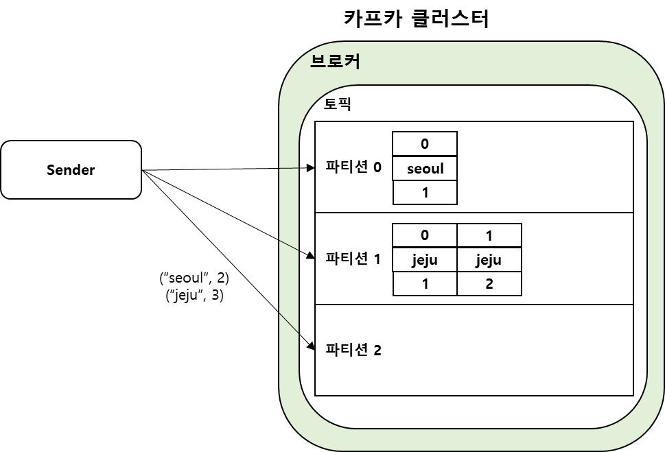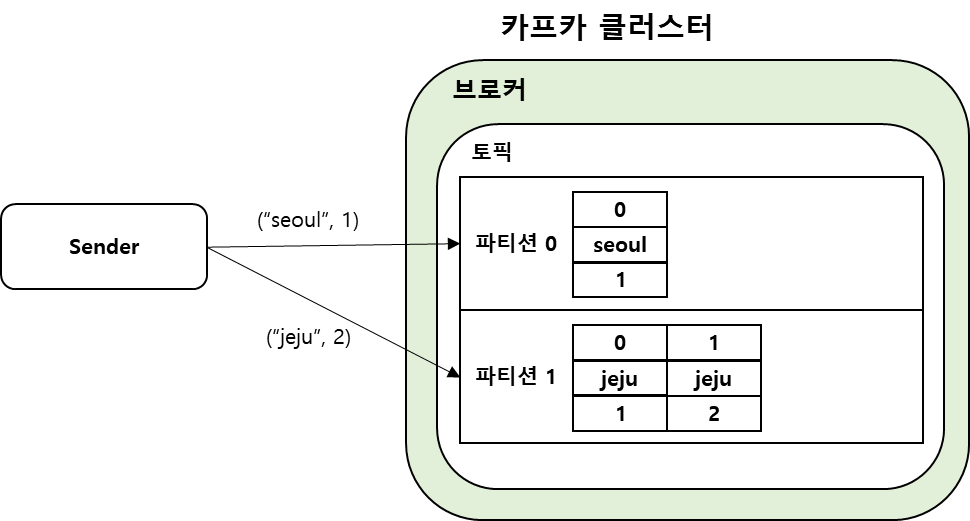프로듀서가 기본 파티셔너를 사용할 때,