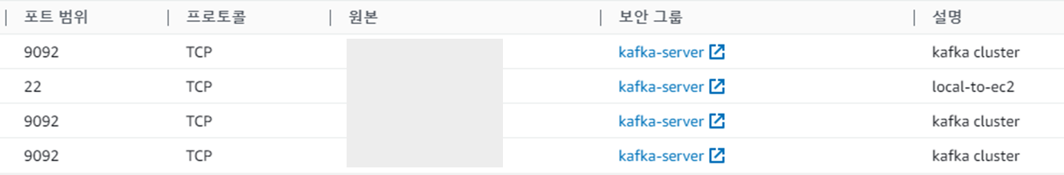 kafka 브로커의 보안그룹을 설정한다.