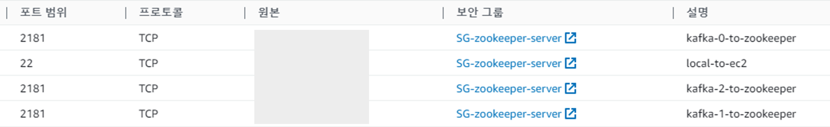 zookeeper의 보안그룹을 설정한다.