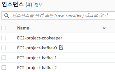 zookeeper 1, broker 3대를 설치할 총 4개의 인스턴스를 생성한다.