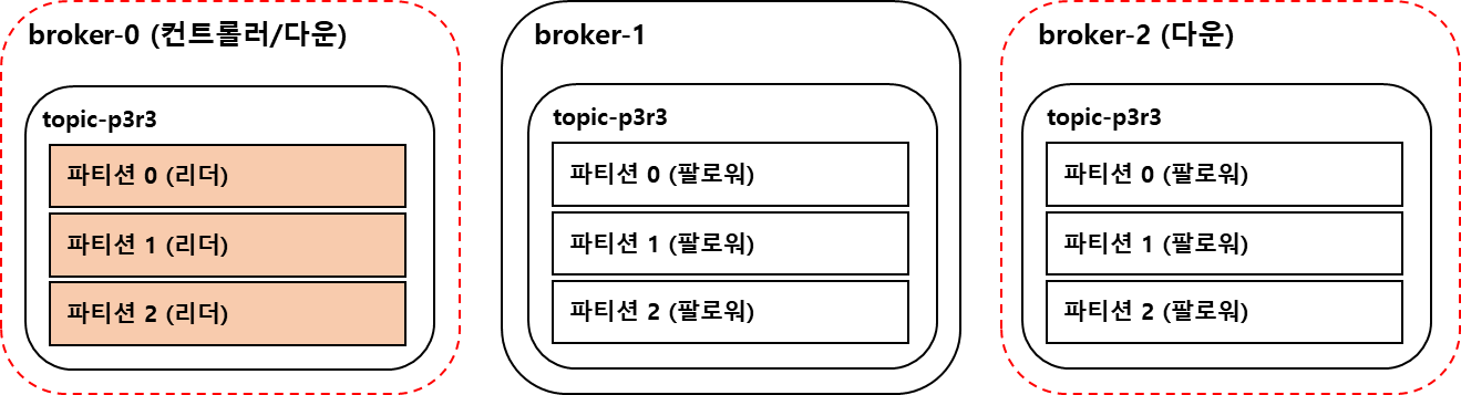 - 리더 파티션이 존재하는 브로커가 다시 시작되기 까지 기다리기 때문에 서비스가 중단된다.