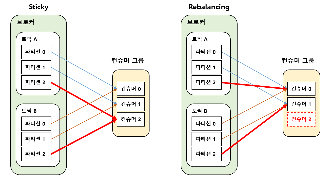 컨슈머 별로 컨슈머 그룹에 최초 조인 시 할당된 파티션을 그대로 유지하고 컨슈머가 shutdown되어도